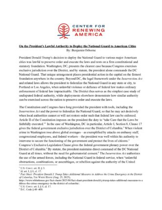 On the President’s Lawful Authority to Deploy the National Guard to American Cities